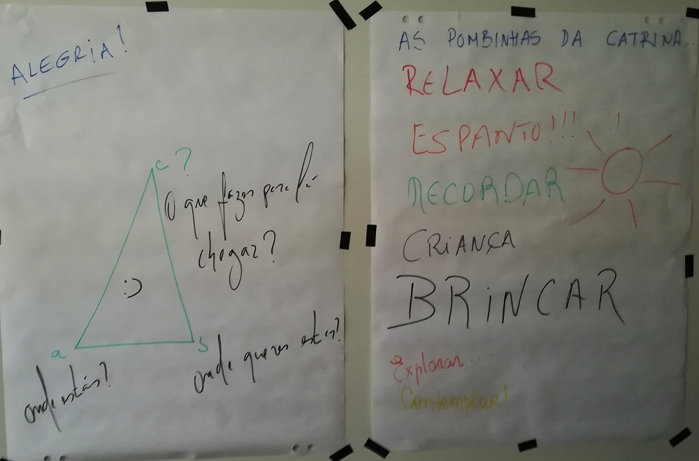 No final, cada um resumiu apenas numa palavra o que sentiu: relaxar, espanto, recordar, criança, brincar, explorar, contemplar e alegria.