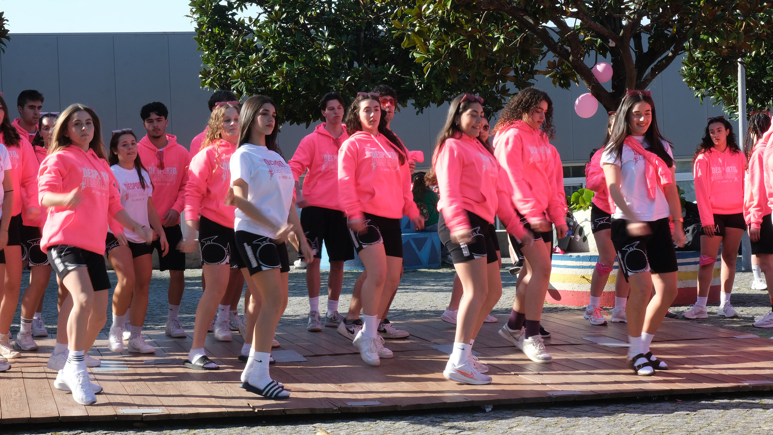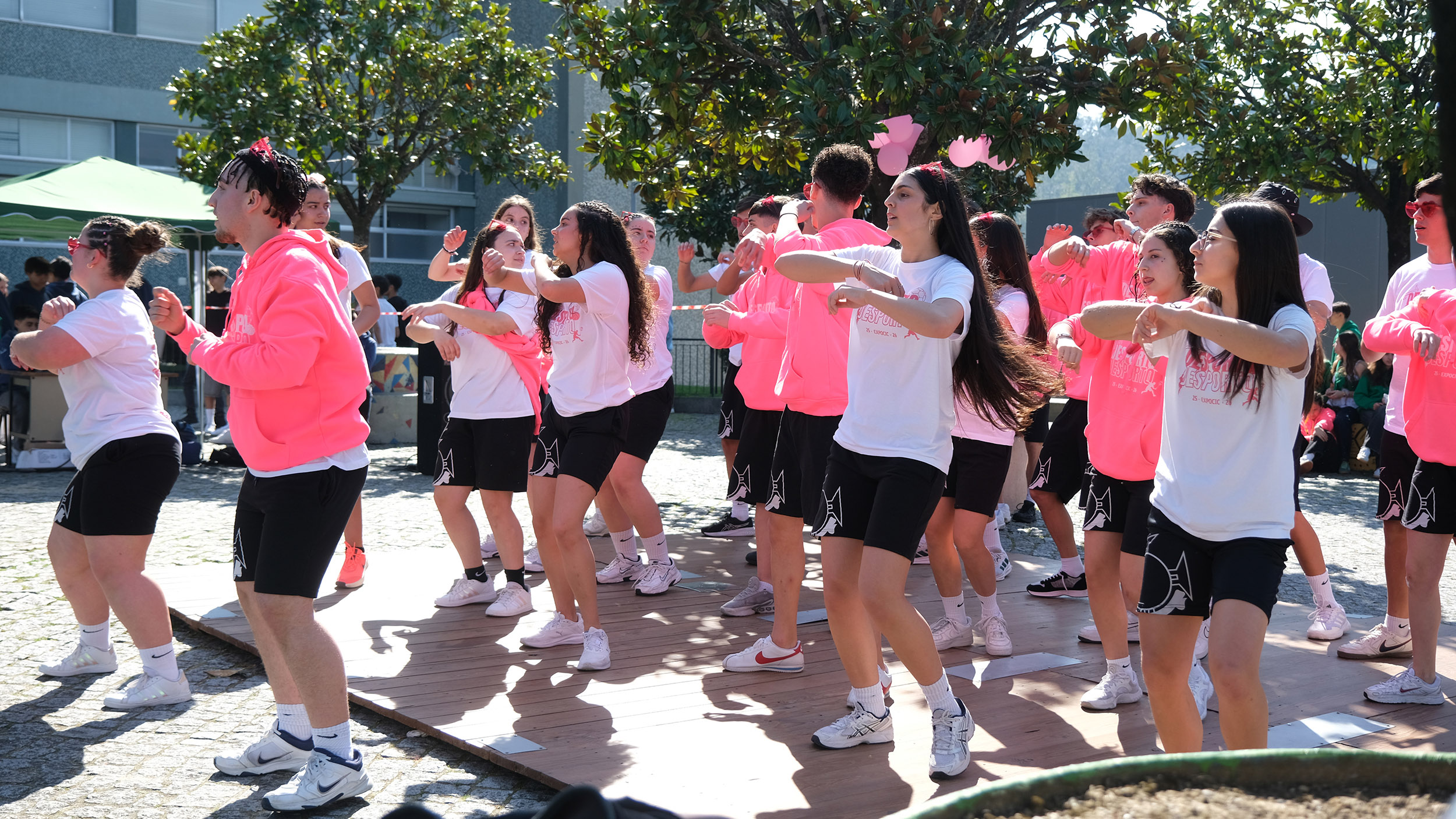 Paralelamente, os alunos do curso de Animação Sociodesportiva animaram os espaços exteriores com várias músicas e coreografias.